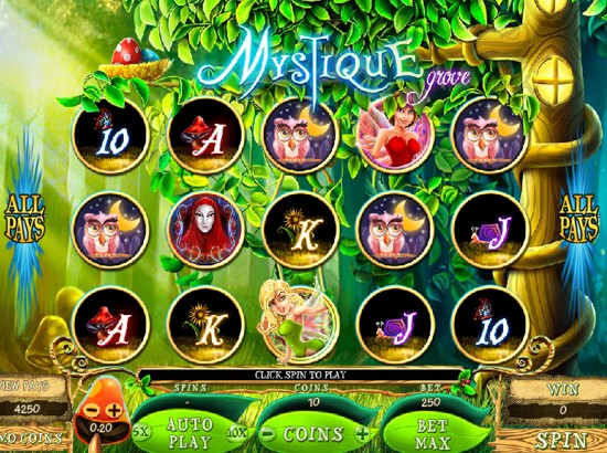 The Mystique Grove is a new All Pays video slot machine with pick-a-prize bonus. All pay ways are permanently enabled for every spin. You are paid for 3 or more of the same symbol appearring on..