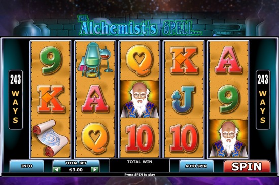 Red Crystals in the Alchemist's Spell will turn stones into gold and prize coins for you. Hit 3 or more Crystals to win up to 20 Free Spins where 3 types of Wild Bullions can bring you up to 30x..