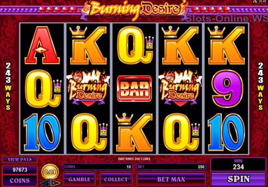 If you have a desire for huge jackpots, this magnificent gaming machine from Microgaming, called "Burning Desire" is what you need to try. The reel symbols in the game, are related to romance and..