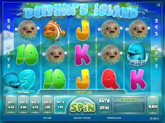 Dolphins Island is a 243 ways to win slot machine with top payout of 1,000 coins and a bonus round. The online game is presented by iSoftBet.