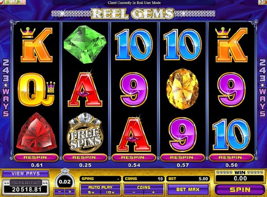 Reel Gems is a NO PAYLINE video slot which allows you 243 ways to win big and introduces brand-new RESPIN Feature. 3 or more scatters trigger 15 retriggering Free Spins where all wins are Tripled!..