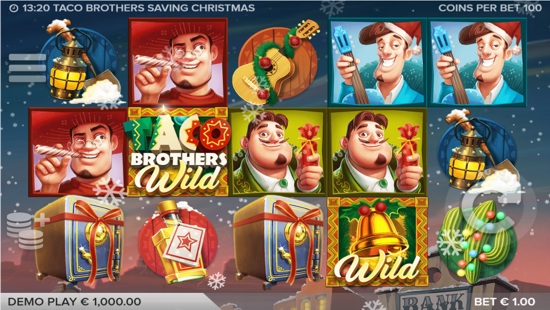 Help Taco Brothers - Paso, Pepe and Pico spread the Christmas cheer by saving as many tacos as possible in the Wild Escape bonus game. Captain Diaz's beautiful daughter Senorita will rescue brothers..