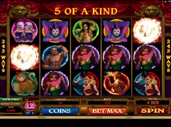 The Twisted Circus slot game from Microgaming is a 5-reel machine with 243 possible ways to win. The game features 2 different Wilds, up to 13 retriggering Free Spins with triple Multipliers, a..