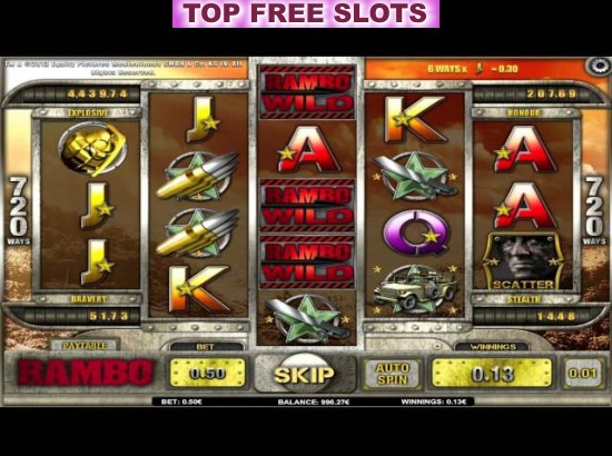 Rambo is a 720 ways to win slot machine with top payout of 1,000 coins and a bonus round. This new online game is presented by iSoftBet.