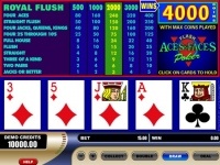 Royal Flush is top winner here - you'll get 4,000 coins jackpot with max bet. 4 Aces pay healthy 400 coins.
