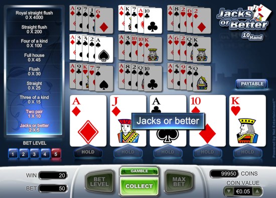 Play Now Download now Mobile. Jacks or Better is played with a 52-card deck that is shuffled after every completed hand. Your first hand of cards will appear in the play area. We suggest you compare the cards in your hand with the paytable on the screen. Any winning combinations in your hand are automatically held and highlighted for you.