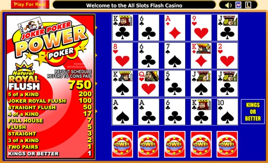 Joker Poker Power Poker is a multi-hand (4-hand) video poker game developed by Microgaming. This free Flash version of the game differs from the download version by decreased maximum payout of just 750 instead of 5,000 in main version. Play it for free to test your skills. All Slots online casino offers both versions of this multihand game as well as standard Joker Poker, and 10-Play and 50-Play power poker games.